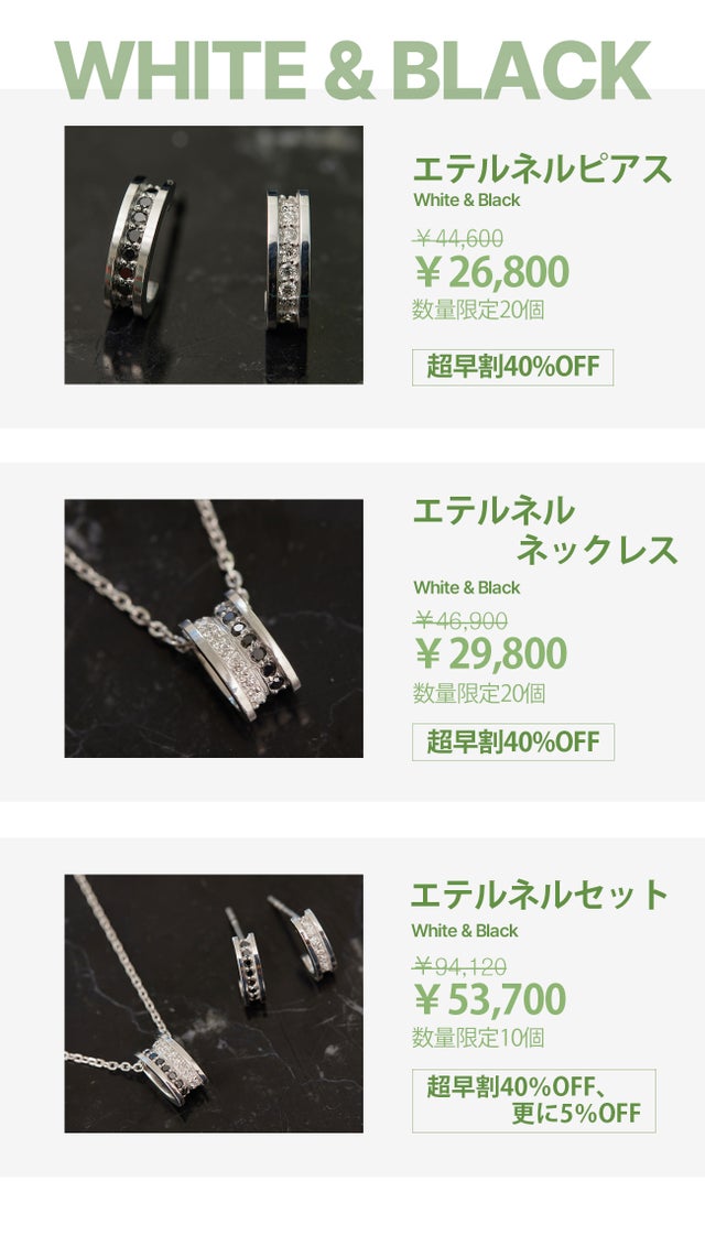 「超早割」ホワイト*ブラック ネックレス・ピアスセット