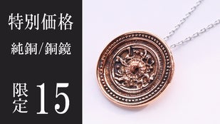 神秘的な輝きを放つ銅鏡と、悠久の響きを残す銅鐸のアクセサリーをご案内いたします。