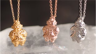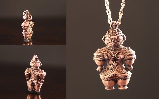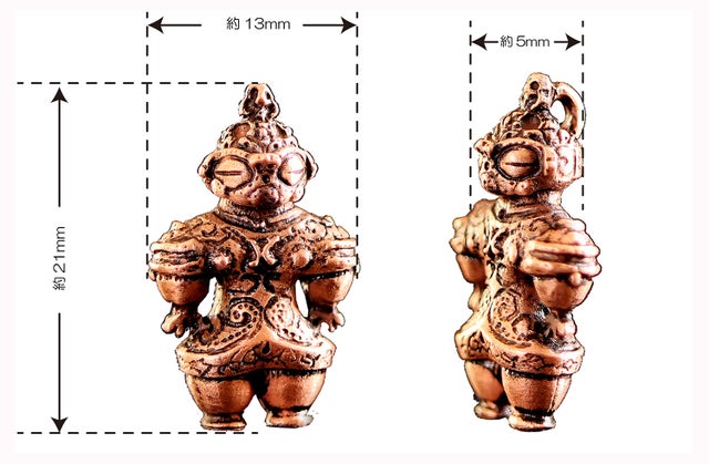宮城県恵比須田遺跡出土の遮光器土偶をモデルにした純銅のペンダント