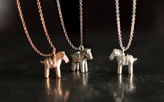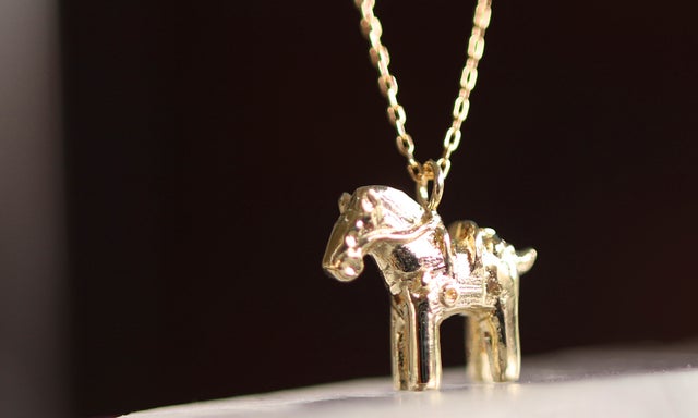 群馬県塚廻り4号古墳の馬形埴輪をモデルにした純銅のペンダント。