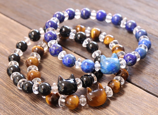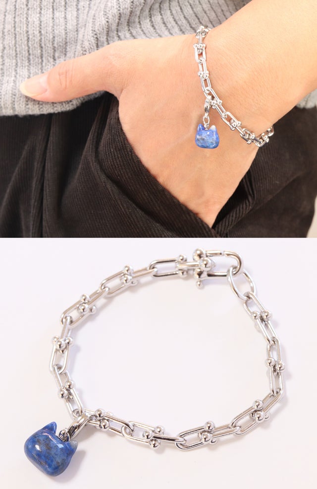 ラピスラズリのネコチャーム1個とチェーンブレスレット