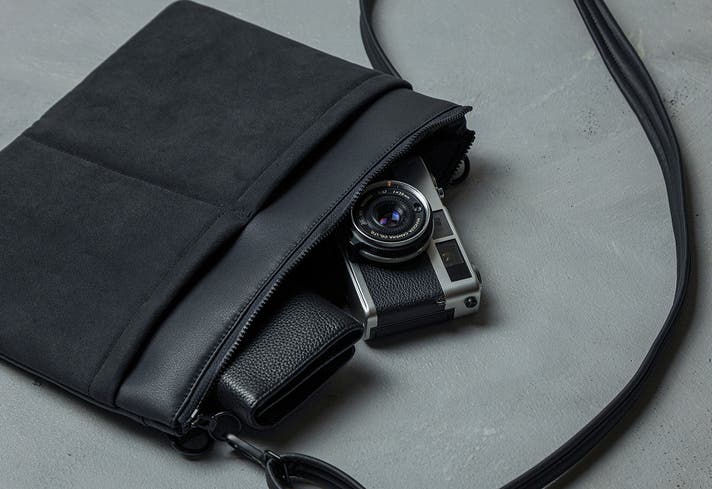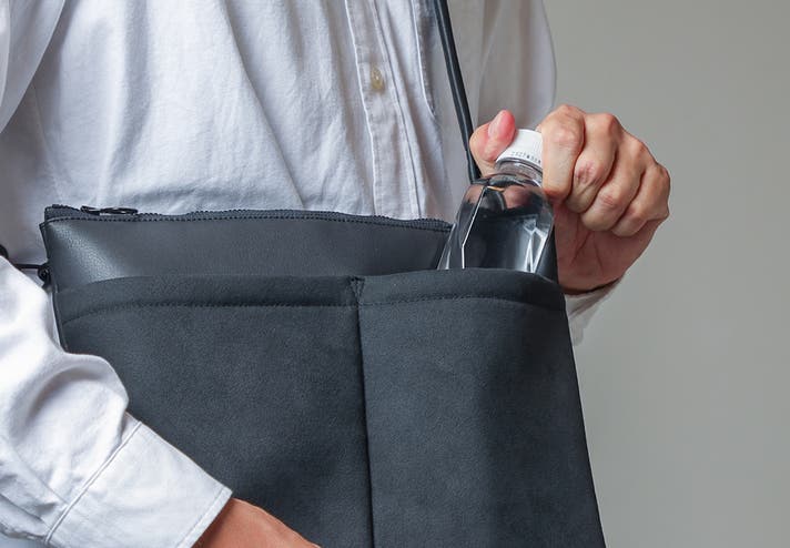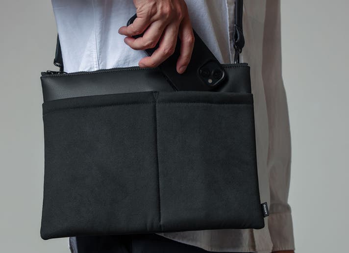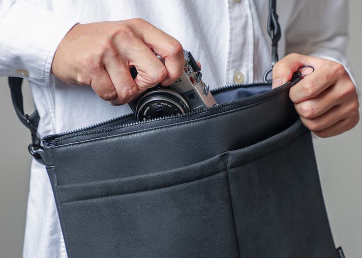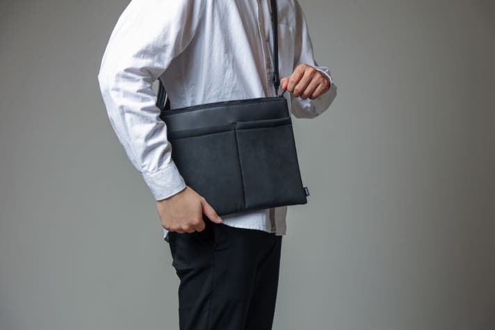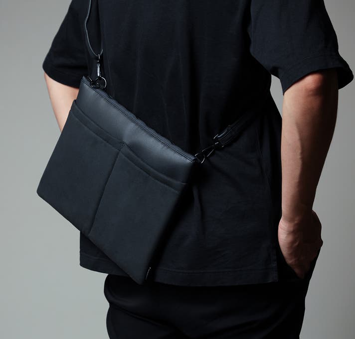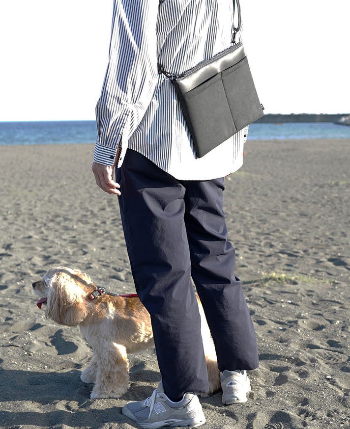 サコッシュ全体が体に沿うよう設計され、歩行時も邪魔にならないシルエット。