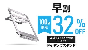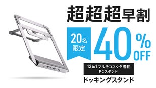 - 13個のコネクタでノートPCの拡張性がデスクトップ級に向上。100W高速充電対応。