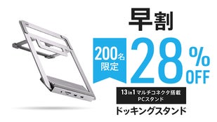 【ドッキングスタンド】は13種類のマルチコネクタを搭載したPCスタンド。