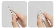 やわらかいスプーンヘッドでやさしくすくい、固まりや湿った耳あかは精密ピンセットでつまむ。
