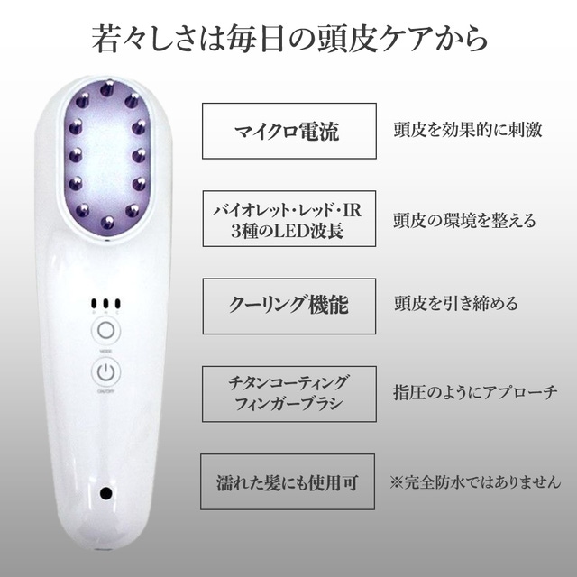 - バイオレット・レッド・IRの3つの波長LEDとマイクロ電流で健やかな頭皮へ導く