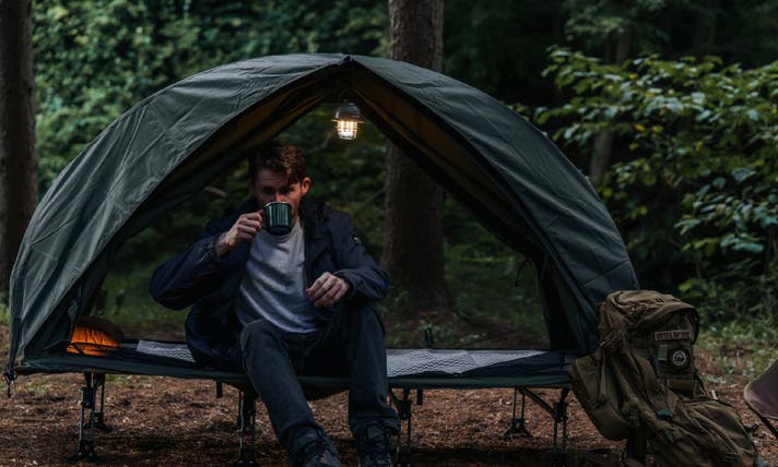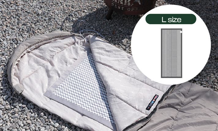キャンプ時、寝袋やコットの上に置くのに適したサイズ(Lサイズ)