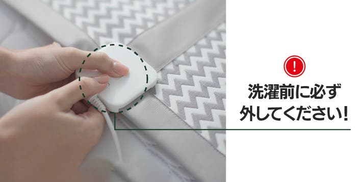 ※洗濯機を使用して洗う場合は、マットに接続されたケーブルを取り外してから入れてください。また、乾燥機の使用は絶対に避けてください。