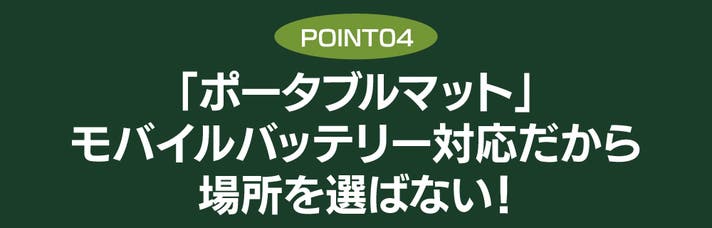 Dr.s竹繊維マットのポータブルサイズである(M/Lサイズ)はUSB充電式ですので、お手持ちのモバイルバッテリー(20000mAh)があれば、場所に関係なくどこでも使用できます。