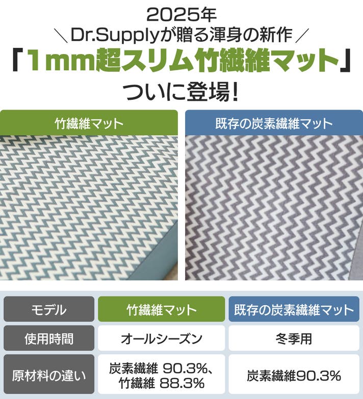 この特長に着目し、Dr.Supplyは竹繊維に厚さわずか1mmの超薄型ヒーターマット技術を融合させ、新しいマットを誕生させました。