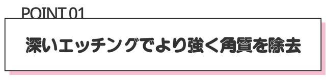 従来のものより深いエッチング加工で、古く頑固な角質の除去にも優れています。