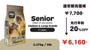 ネイチャーズハグのシニアレシピは、中型犬・大型犬の加齢に伴う特別なニーズを満たすように処方されています。