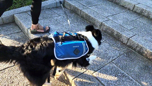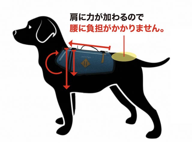 荷物の負荷がワンちゃんの肩にかかる「動きやすい構造」になっているため、傾斜のある山道や段差の大きな階段でもラクラク登ることができます。