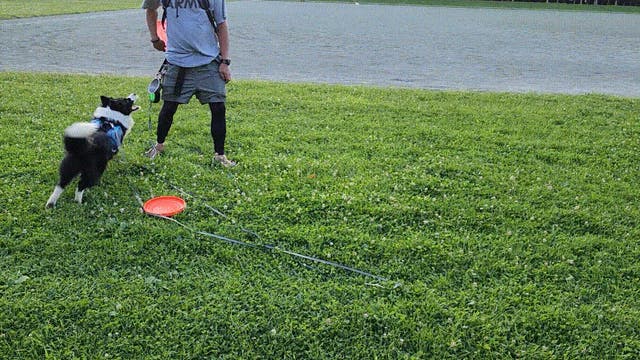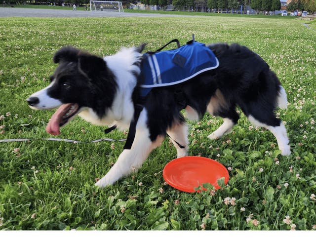 嫌がらずにフリスビーもいつも通りできているので、負担にならないのでしょうね。