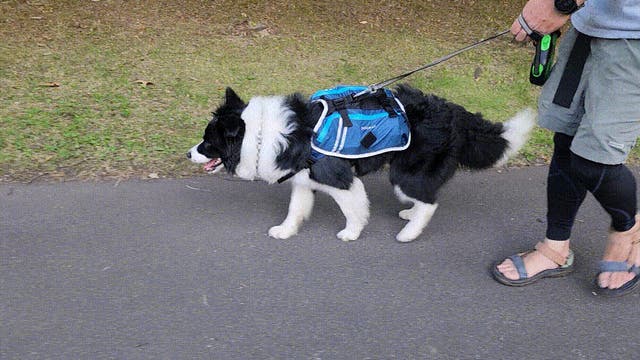 ※背負わせる荷物の重量は「犬の体重の25%以内」を守りましょう(獣医推奨)。DOGPAKも含めた重量がワンちゃんの体重の25%を超えないように注意してください。