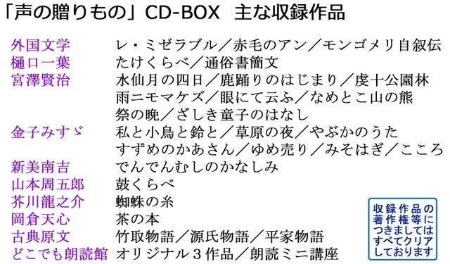 どこでも朗読館の集大成!7枚組CD-BOX「声の贈りもの」1セット<解説書封入>