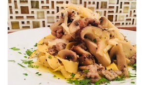 4.手打ちロングパスタ 自家製ソーセージとキノコのソース