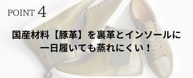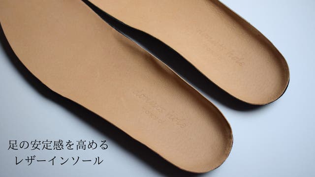 足に当たる裏革やインソール部分に豚革を使用する事で、多量に搔いた汗を吸収して靴の中を快適に保ってくれます。