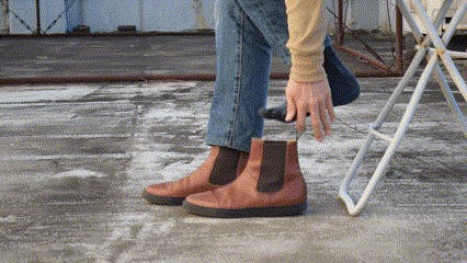 切り返しが少なくソリッドなデザインが特徴のサイドゴアブーツは他のブーツのように靴紐・ストラップ・バックルなどが付いておらず、ゴムによって靴が足にフィットする構造になっていることが特徴です。