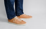 中物に天然コルクを使用することにより、履き込む事による沈み込みが期待でき、履く人に合わせて馴染むスニーカーを実現します。