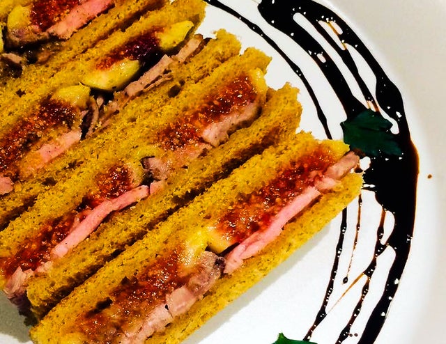 Doorsでは、お肉と季節フルーツを合わせて特製ソースを付けて食す。フランス料理を挟み込む日本初のフレンチサンドイッチを提供しています。