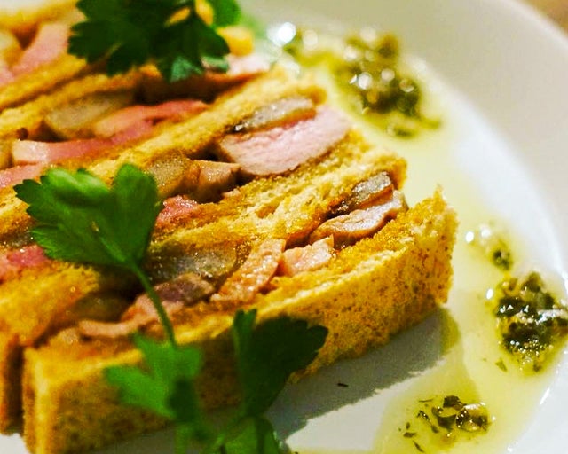 肉の旨み、フルーツの酸味、甘味、香辛料の辛味、苦味、塩味、全粒粉パンの香ばしさとそれぞれの食感と温度。ソースを付けた時に増すコクのバランス。それらがベストな状態で組み合わさる食材同士の一体感を感じていただきたいと思います。