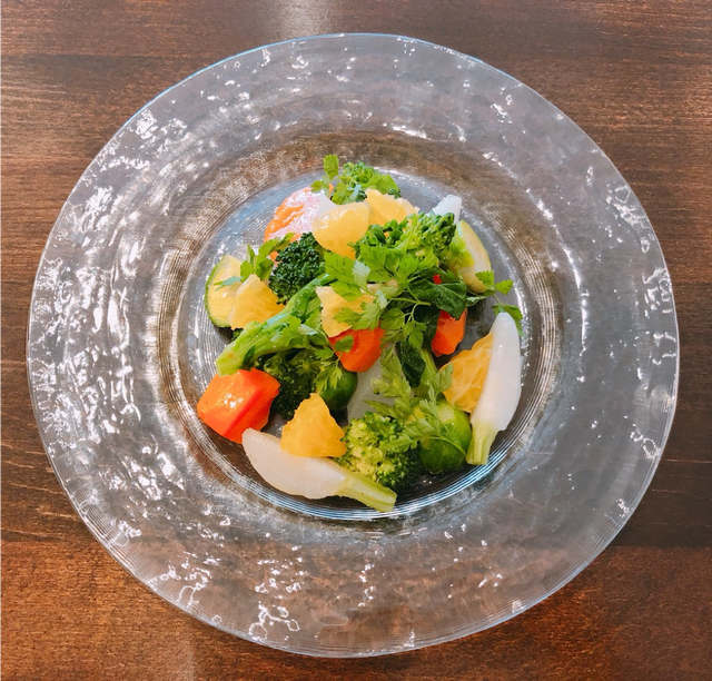 ほどよく熱を入れて甘みを最大限に引き出すことに成功した温野菜で構成された創作サラダ。