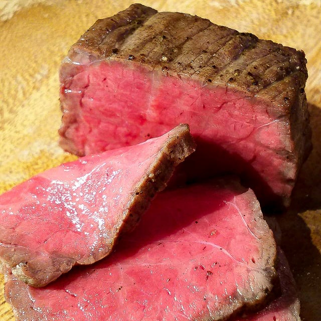 ・バターでソテーして表面に焼き目をつけ、オーブンで熱を通すことでベストな脂のとろけ具合にした和牛