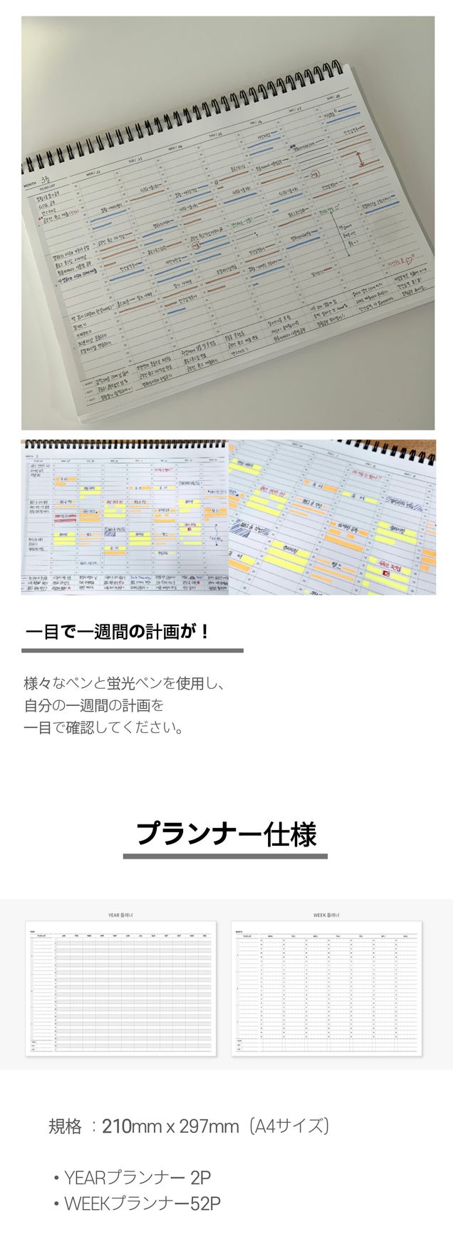 1年分の1日プランナー、週間プランナーと機能性ノート
