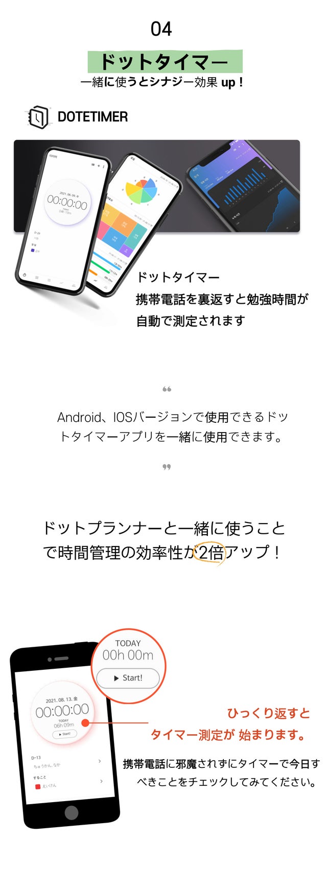 ※AndroidやIOSを搭載したドットタイマーアプリと一緒に使用できます。
