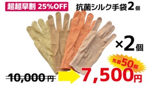 【超超早割25%OFF】抗菌シルク手袋(2点)