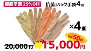 【超超早割25%OFF】抗菌シルク手袋(4点)