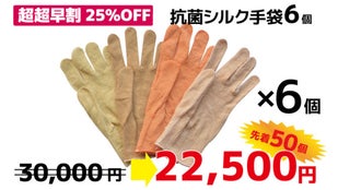【超超早割25%OFF】抗菌シルク手袋(6点)