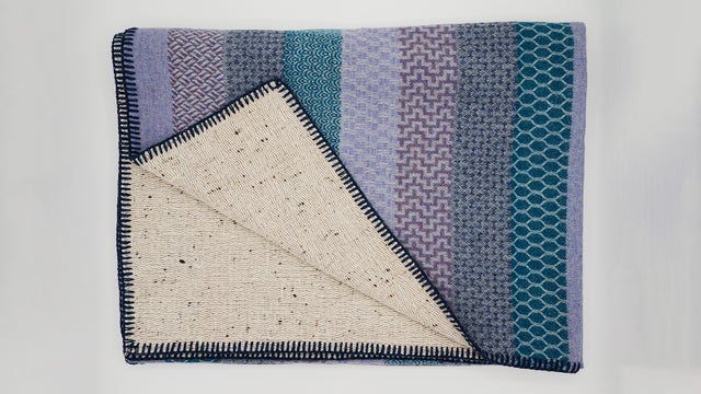 世界有数の毛織物産地尾州地区(愛知県一宮市のあたり)の技術力とカネカの科学力が合わさることでプロジェクトが実現しました。複雑な柄を特殊な織機で時間をかけてゆっくりと織られた美しい和柄織物とカネカプロテックスMを主材料にした難燃織物を重ね合わせて一枚のブランケットにしています。美しさと難燃性、2つ表情を持ったブランケットです。