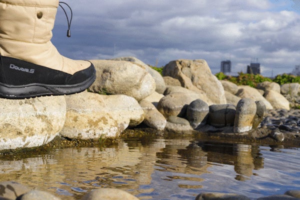 防滑性:天然ゴム発泡素材の最大の特徴でもある防滑性は,従来のラバーソールやEVA素材より格段に優れています。晴れ、雨の日はもちろん、雪上やアイスバーンのような非常に滑りやすい地面でも、滑るリスクを軽減します。