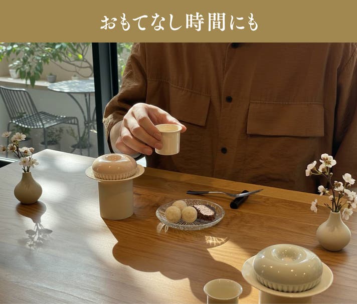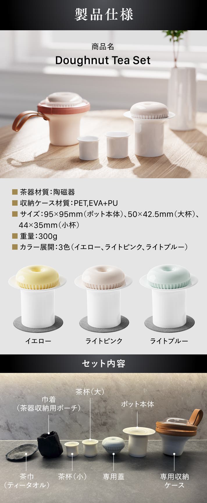 今回ご紹介する茶器セット『Dought tea set』もその一つ。海外の展示会でひと際輝いており、従来の世代には新しい価値を、お茶に馴染みのなかった世代にも自然と楽しむ暮らしが提案できる──そんな可能性を感じた製品です。