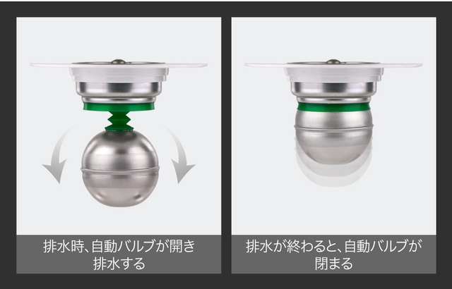 - 自動バルブシステムで水を流す時だけ開き、ニオイ、害虫、逆流を遮断!