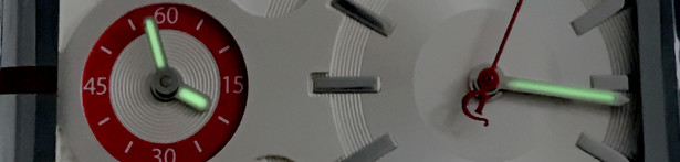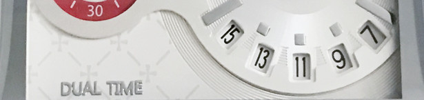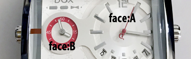 この時計の最大の特徴、1つの文字盤に2つの時刻を刻むことが出来ます。