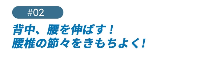 腰と背中を中心に伸ばすストレッチ動作 ! 伸びをするように背中と腰を気持ちよく伸ばします。