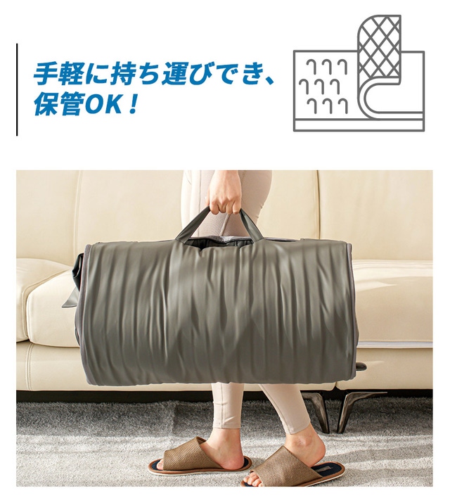 - 手軽に持ち運びでき、保管OK ! ベルクロタイプで、使用しないときは折り畳んで保管できます。