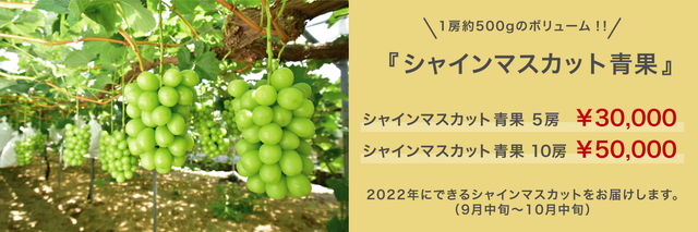 シャインマスカットの青果は9月中旬頃からの発送を予定しております。