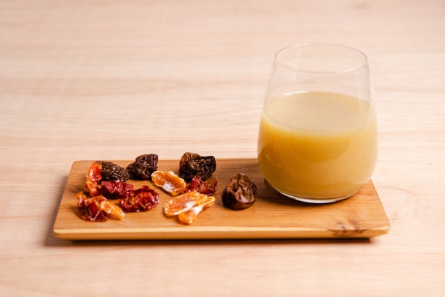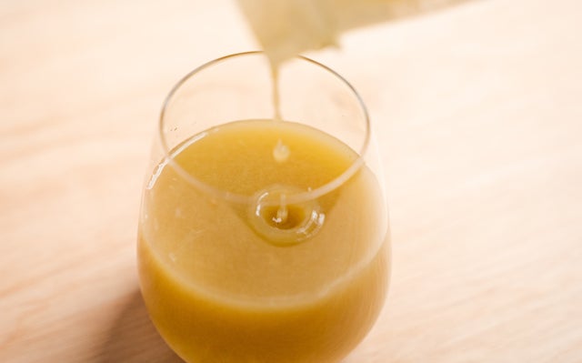 そこで、ちょうど良い塩梅で加熱し、「ギリギリのライン」を責めて剥き、果肉を丸ごとジュースにしています。