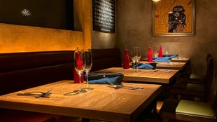 ライブ感溢れるカウンター席に加え、グループでも利用できるボックスソファー席、テーブル席をご用意。
