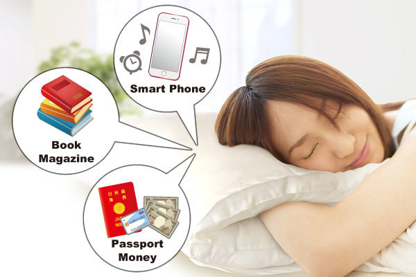 スマートフォン、読みかけの本、 夢で逢いたいあの人の写真などなど……。枕の中に入れることで、スマートフォンから目覚ましやアラーム、音楽を近くで聞くことができますし、寝ている間にどこかへ行ってしまう心配もありません。