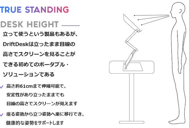 リターン品の配送が完了するまで、株式会社グローバルストライダーはDriftDeskの日本における独占販売権を有する正規代理店です。詳細に関しては、ページ下部のリスク&チャレンジをご確認ください。ます。
