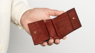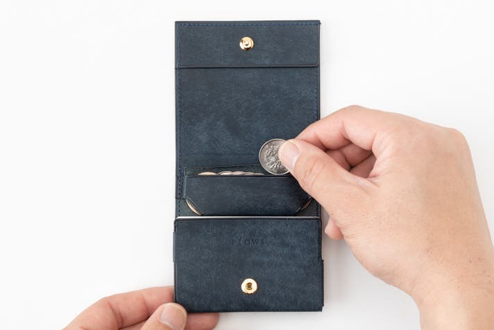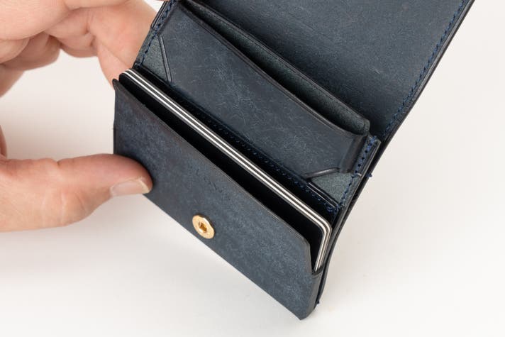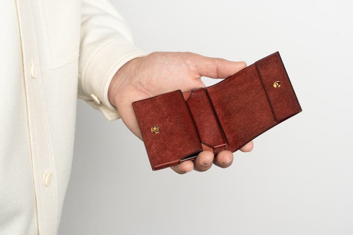 - 驚きの8.4×8.8cm。手のひらサイズの極小本格二つ折り財布
