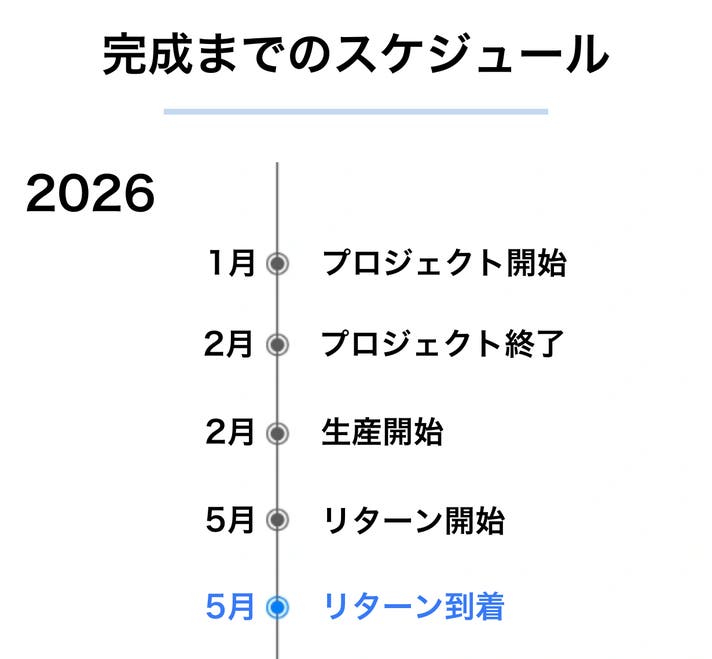 皆様のご応援購入により量産効率が向上した場合、正規販売価格が販売予定価格より下がる可能性もございます。