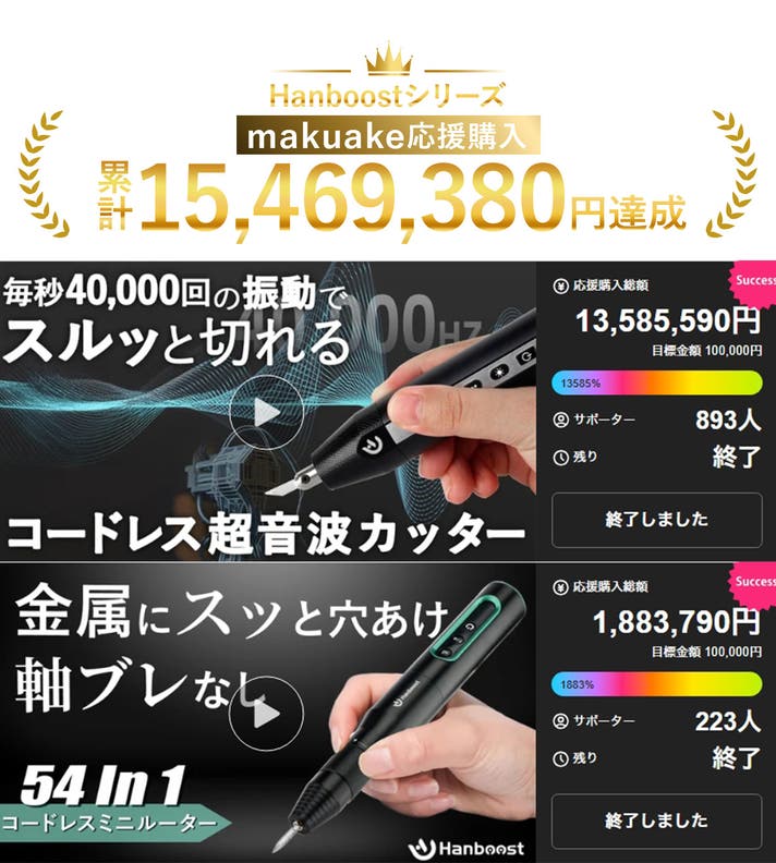 リターン品の配送が完了するまで、BRIGHT DIY (実行者)はHanboost(メーカー)の日本における独占販売権を有する正規代理店です。詳細に関しては、ページ下部のリスク&チャレンジをご確認ください。