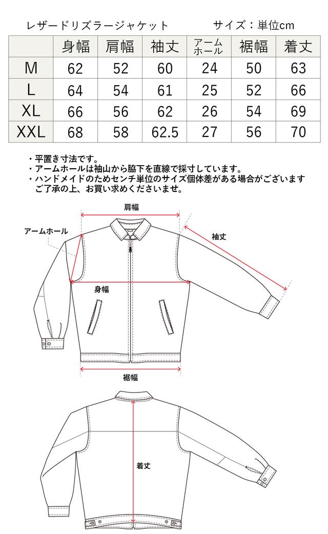 私たちは【ソフトカウレザー ドリズラージャケット】をいち早く皆さまのもとにお届けできるよう、現地工場とともに誠心誠意生産を進めております。 しかしながら生産工程において資材が牛革という天然素材の為、納期が一部変更になる可能性がございます。 プロジェクトページに記載している内容に変更がある場合は、できるだけ早く活動レポートなどで共有を行っていく予定です。 ※購入後の交換、返品はお受けできません。 ※本文中に記載させていただいたスケジュールは、あくまでプロジェクト公開時点の予定です。 応援購入の性質上、配送遅延のおそれがございます。 原則として、配送遅延に伴う応援購入のキャンセルはできませんが、リターン配送予定月から2ヵ月を超えた場合には、希望者に限りキャンセルにて対応させていただきます。