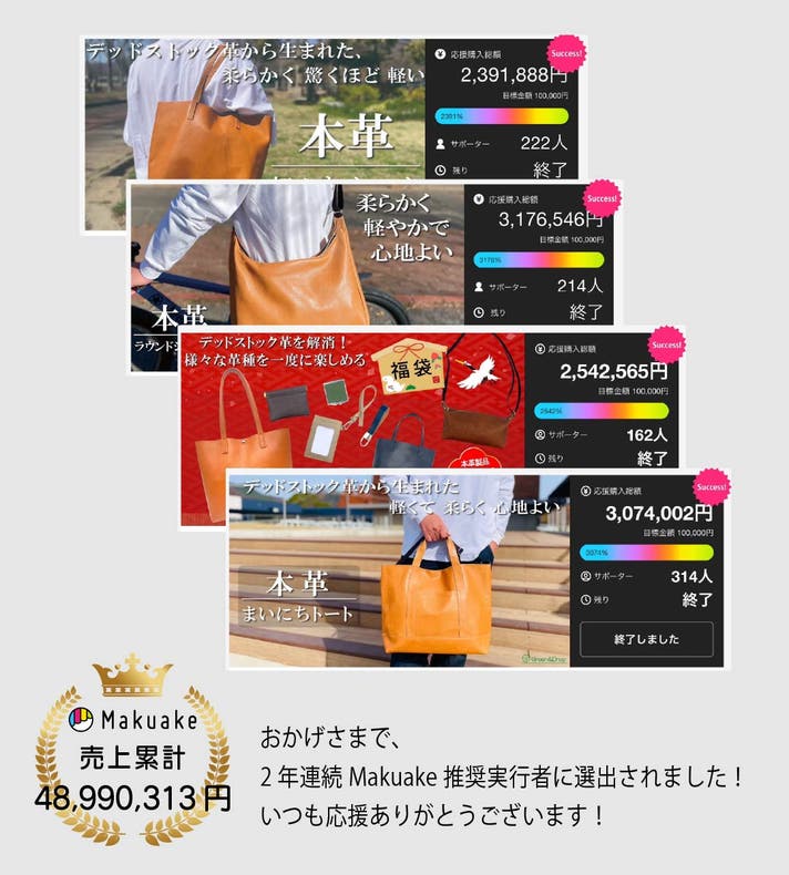 過去にたくさんのプロジェクトを実施してきました。そして現在2年連続Makuake推奨実行者にも選出いただき、本当に感謝の気持ちでいっぱいです。いつも皆さまからの温かいコメントやメッセージに励まされ、今日までプロジェクトを続けてこれました。